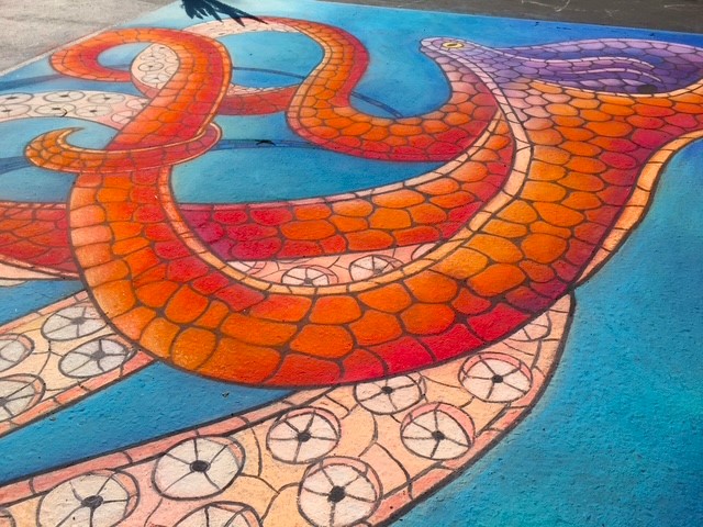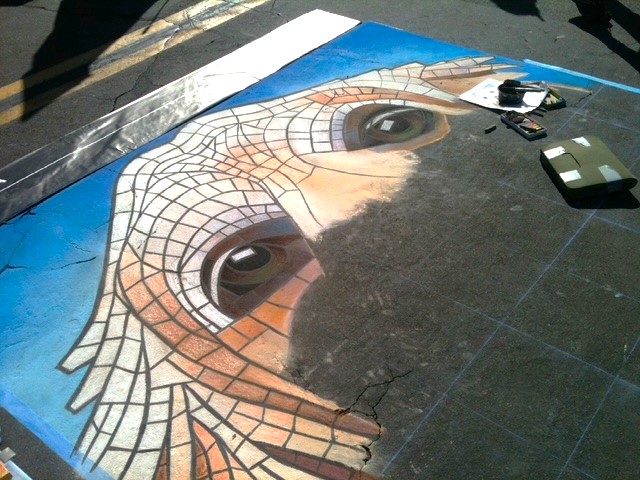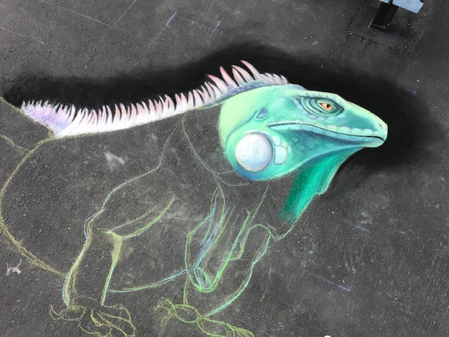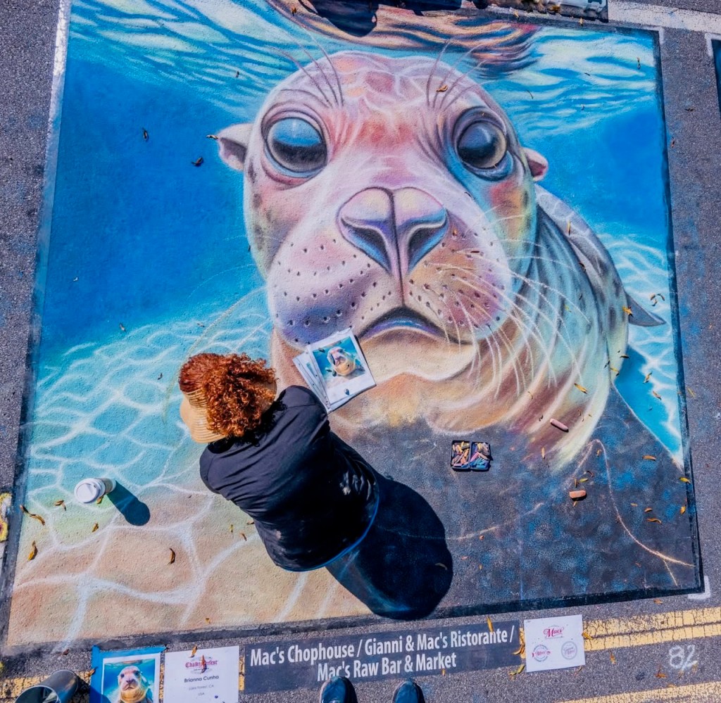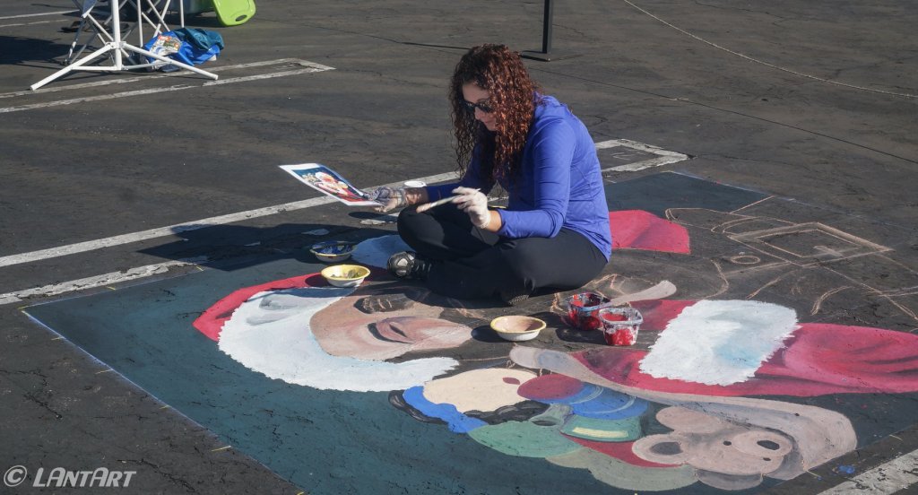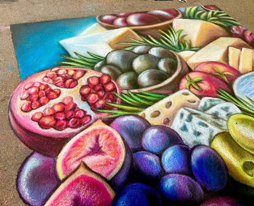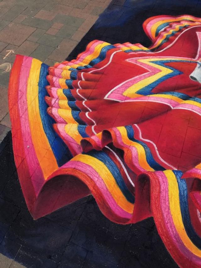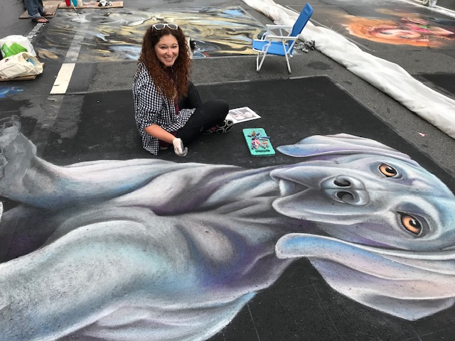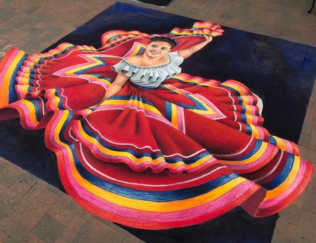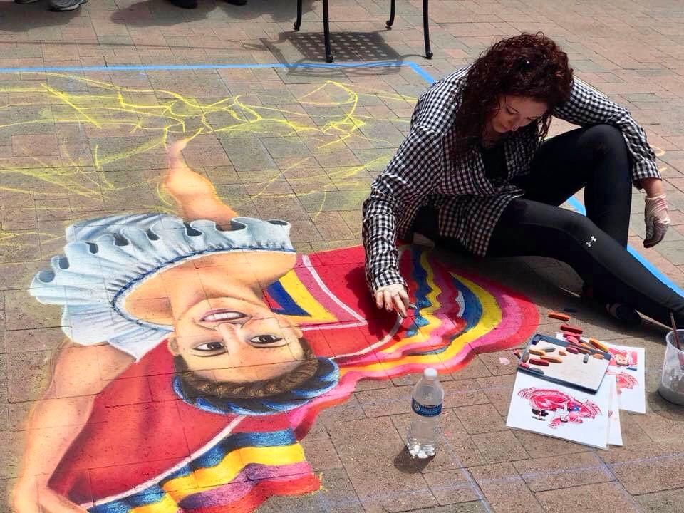The origins of street art can be traced back to 16th century Italy, where artists were paid to create depictions of religious subjects on the streets. Since a popular subject matter was the Madonna, these artists were commonly referred to as ““Madonnari”. This artform lost popularity in the ensuing centuries, but was renewed in the 1970s and has been embraced by artists and the public. Today, artists participate in Chalk Festivals throughout the United States and internationally; gathering as a community to showcase their talents and celebrate this historic artform. A spectator at a Chalk Festival will witness the creation of large-scale art pieces ranging from recreations of famous masterpieces to 3D illusions.