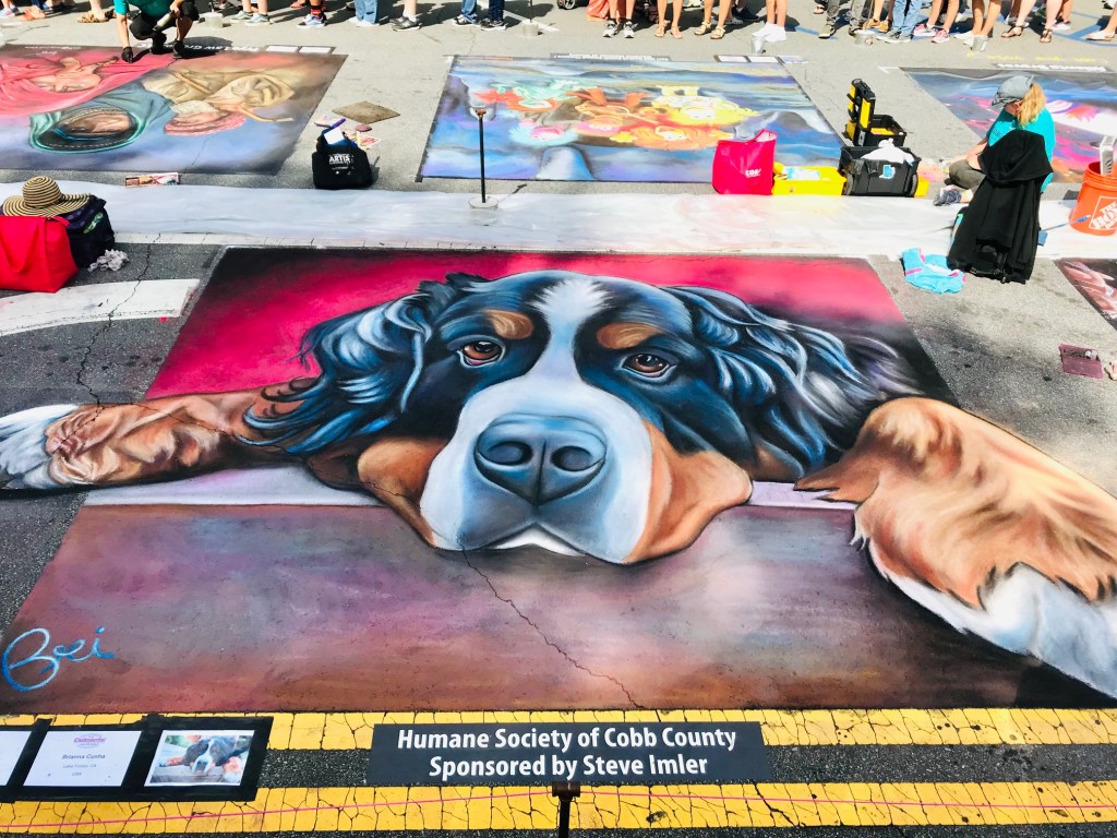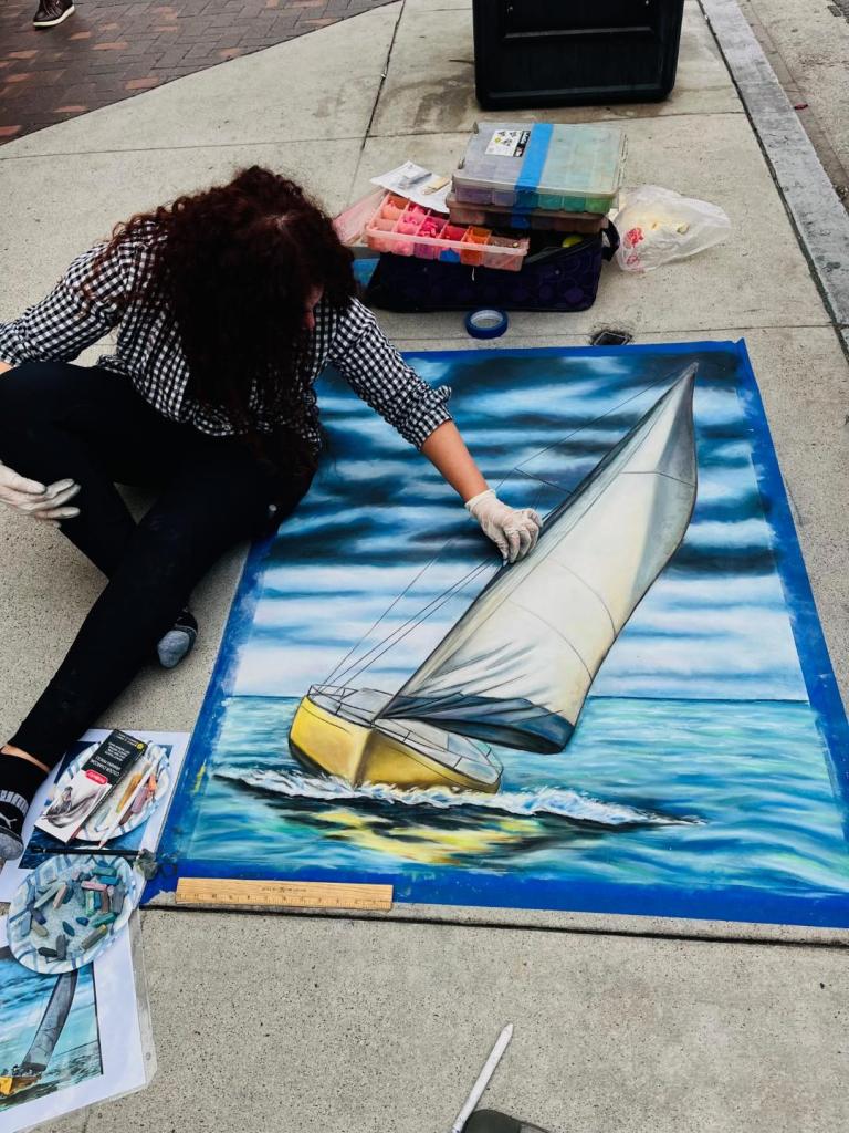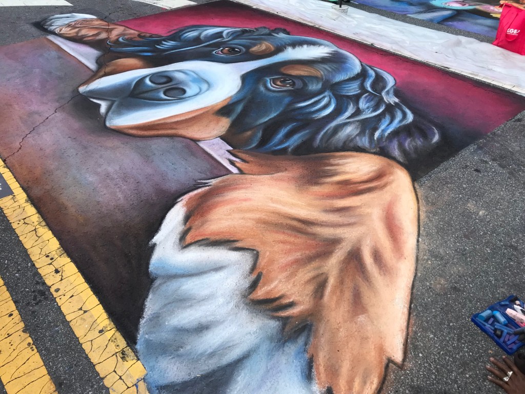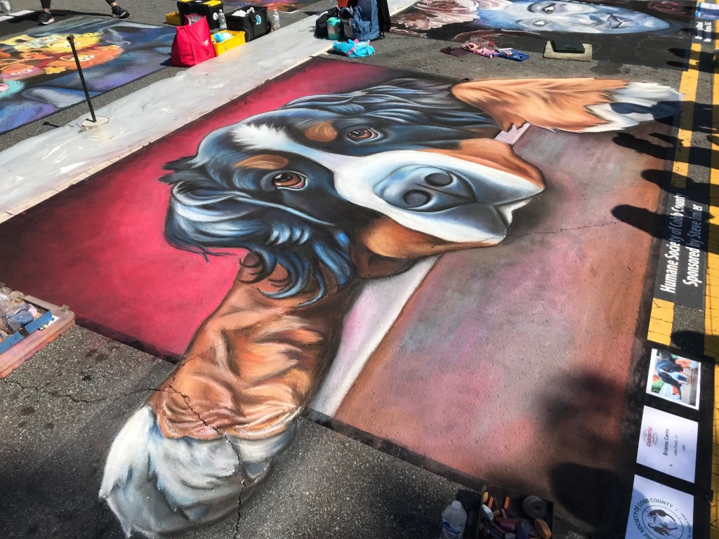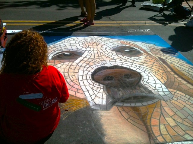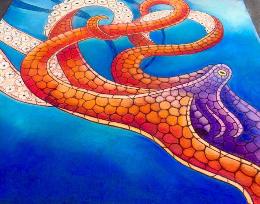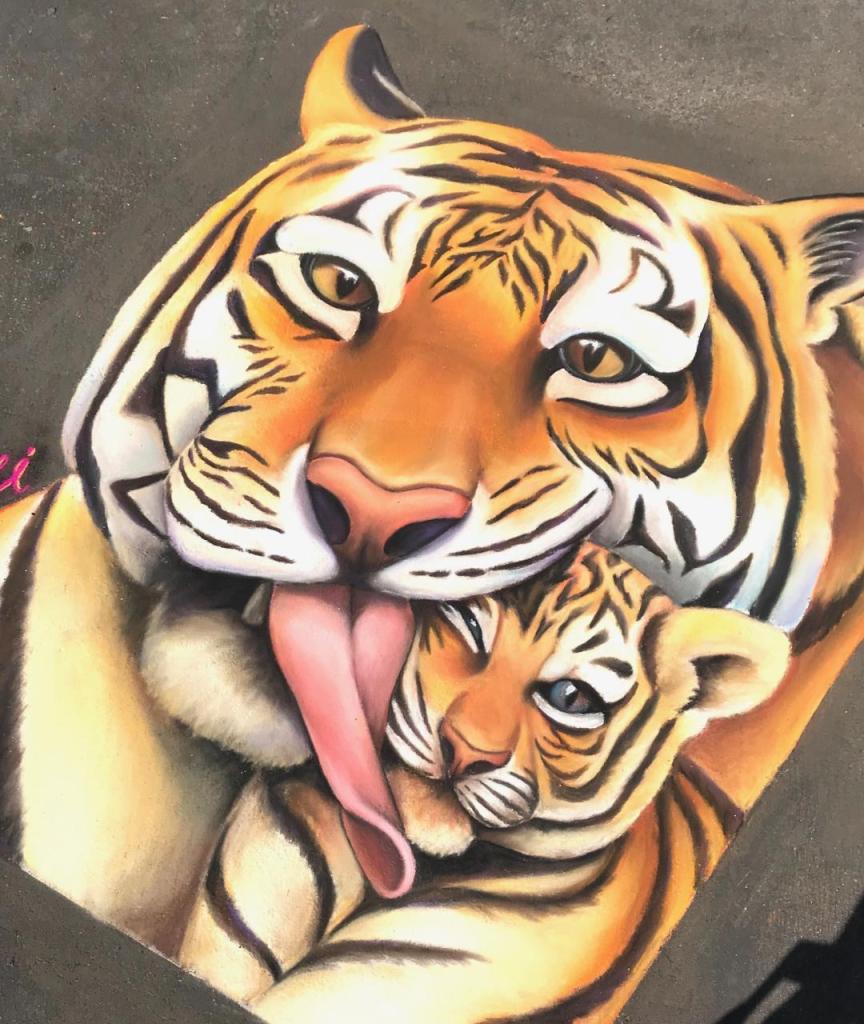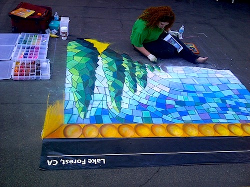 The origins of street art can be traced back to 16th century Italy, where artists were paid to create depictions of religious subjects on the streets. Since a popular subject matter was the Madonna, these artists were commonly referred to as ““Madonnari”. This artform lost popularity in the ensuing centuries, but was renewed in the 1970s and has been embraced by artists and the public. Today, artists participate in Chalk Festivals throughout the United States and internationally; gathering as a community to showcase their talents and celebrate this historic artform. A spectator at a Chalk Festival will witness the creation of large-scale art pieces ranging from recreations of famous masterpieces to 3D illusions.