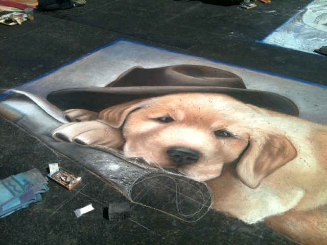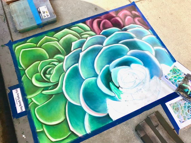 Today, most street artists utilize sidewalk chalk and chalk pastels in the creation of their pieces. Tempra paint is sometimes used as a foundation, giving the ground a more uniform texture and providing a basecoat of color. When visiting a Chalk Festival, you will see a variety of pastels, techniques and tools used by artists.